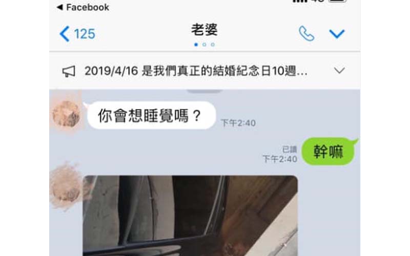 直接中路要害!一名男網友下午2點多昏昏欲睡工作時,突然收到老婆的LINE,一打開卻是「