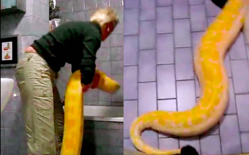 他幫寶貝黃金蟒洗泡泡浴,整隻塞進浴缸的過程好辛苦 蟒蛇探頭賣萌,似乎很舒服 在生活中,