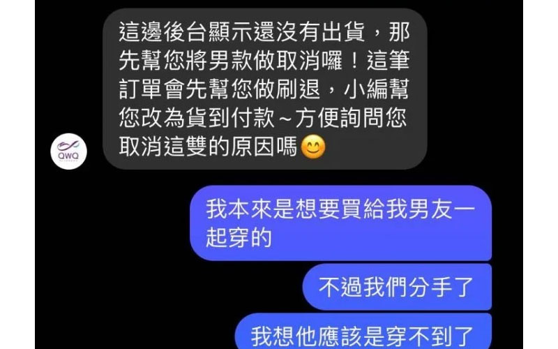 七夕情人節,她早就備好禮物,要給他一個驚喜,未料意外結束1614天的愛情,硬著頭度向店家退掉其中男款