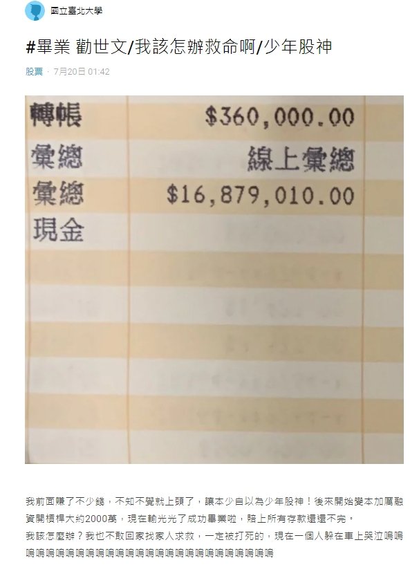 股市多頭年代,許多年輕人想著短時間致富,紛紛選擇「All in」投入股海,甚至選擇用借
