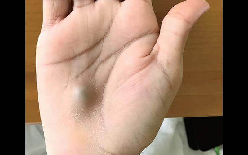 日前一名27歲的壯男,在看完牙醫後,覺得牙齒狀況還不錯,但手掌心附近,卻離奇長出一個「藍色突起物」,