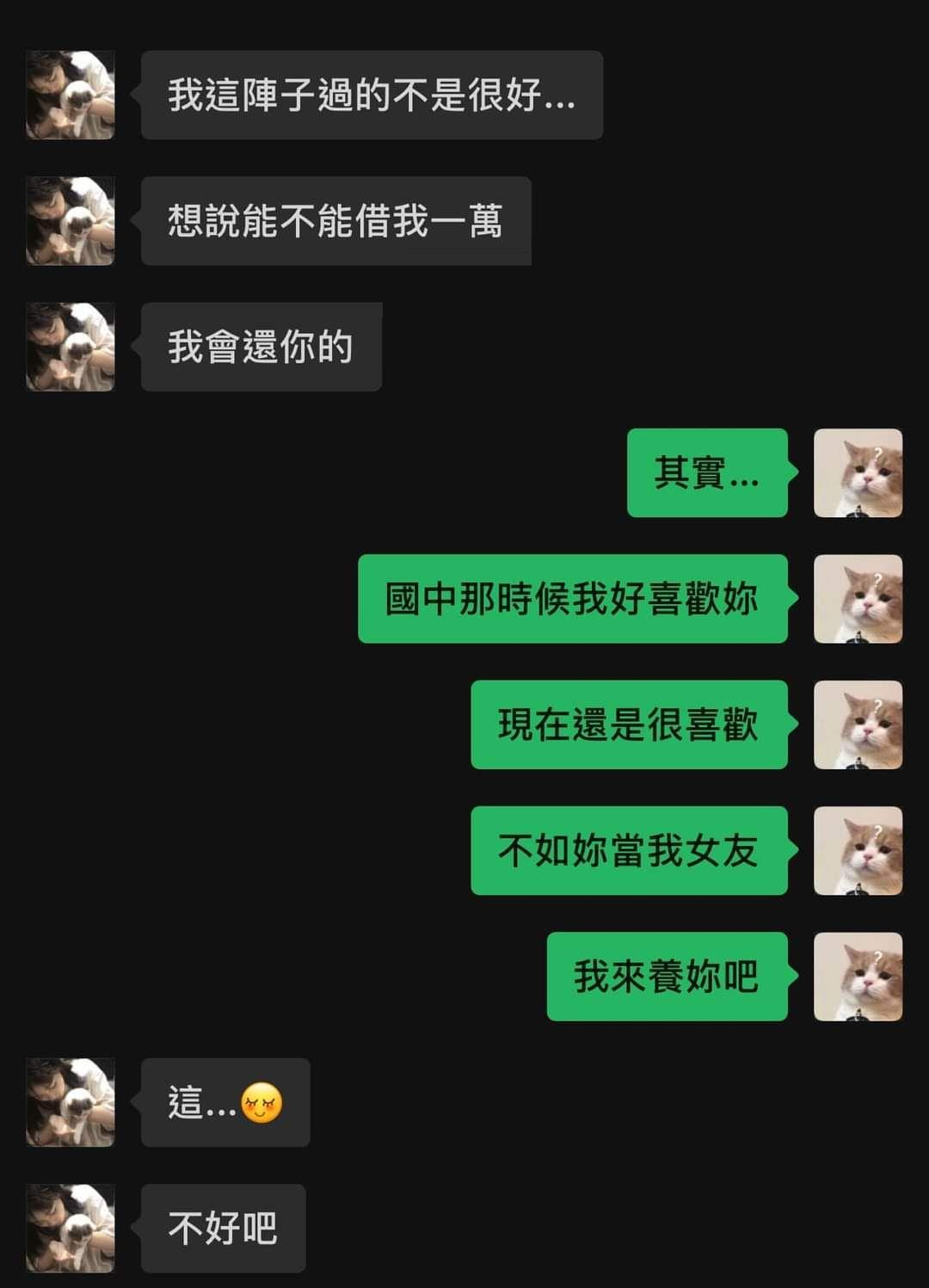 網友在臉書社團上分享幾張對話截圖,一開始只見一名女性說出自己名字並表示是自己的國中同學,讀書時期還被