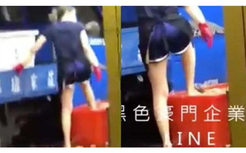 用腳踩比較乾淨?近日有民眾行經土城一家麻油雞店門口時,發現店員腳穿著拖鞋,直接伸進水桶裡踩壓食物進行