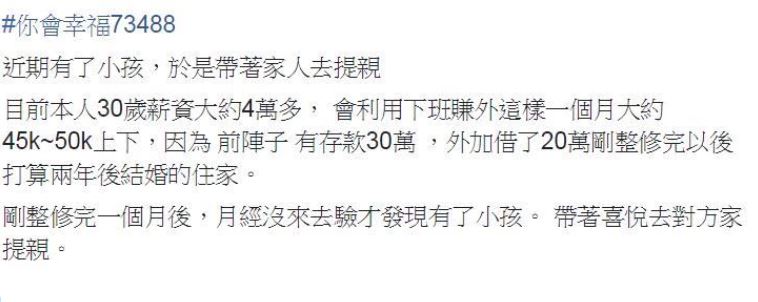 結婚時聘金到底多少才合理?一位網友近日在「靠北女友」上po文,表示自己到懷孕女友家提親,但對方開出的