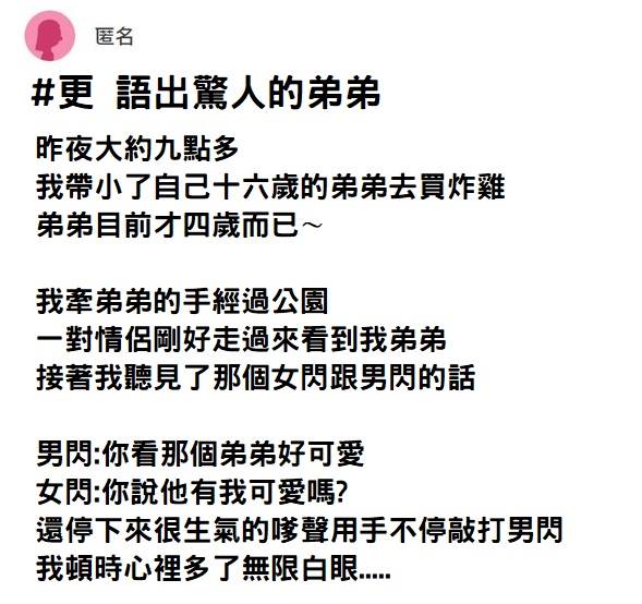現在小孩真的一個比一個狂…好好栽培弟弟,以後就靠他各種洗臉了www,重點是小孩是不會說謊的,如此真誠