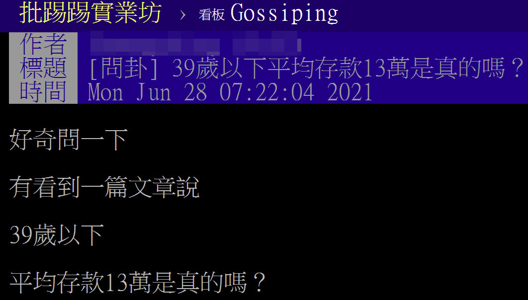 根據人力銀行3月底發布的數據顯示, 39歲(含)以下的勞工個人名下總存款平均僅有13萬元左右。 就有