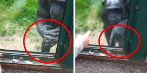 黑猩猩種很聰明的動物, 行為也和人類近似, 而這隻黑猩猩竟會用手語向人表達出一種意思來! 有位遊客到