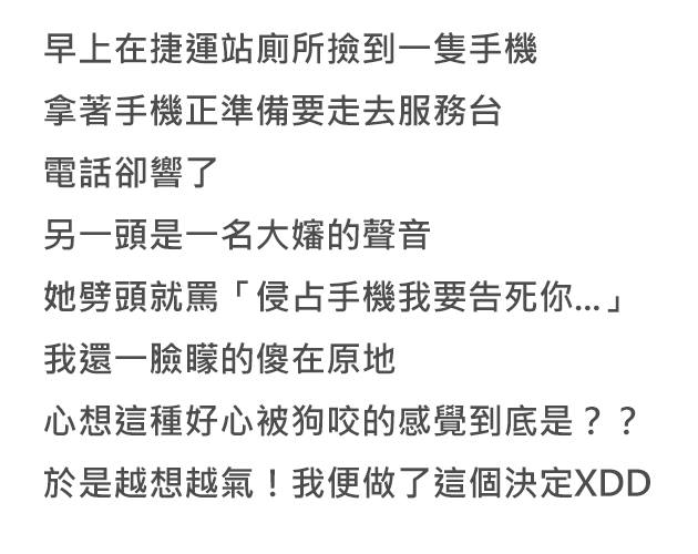 如果你撿到手機你會怎麼做?大多好人們都會是拿去服務台/警察局等第三方公正人士 但是今天這位妹子遇到的