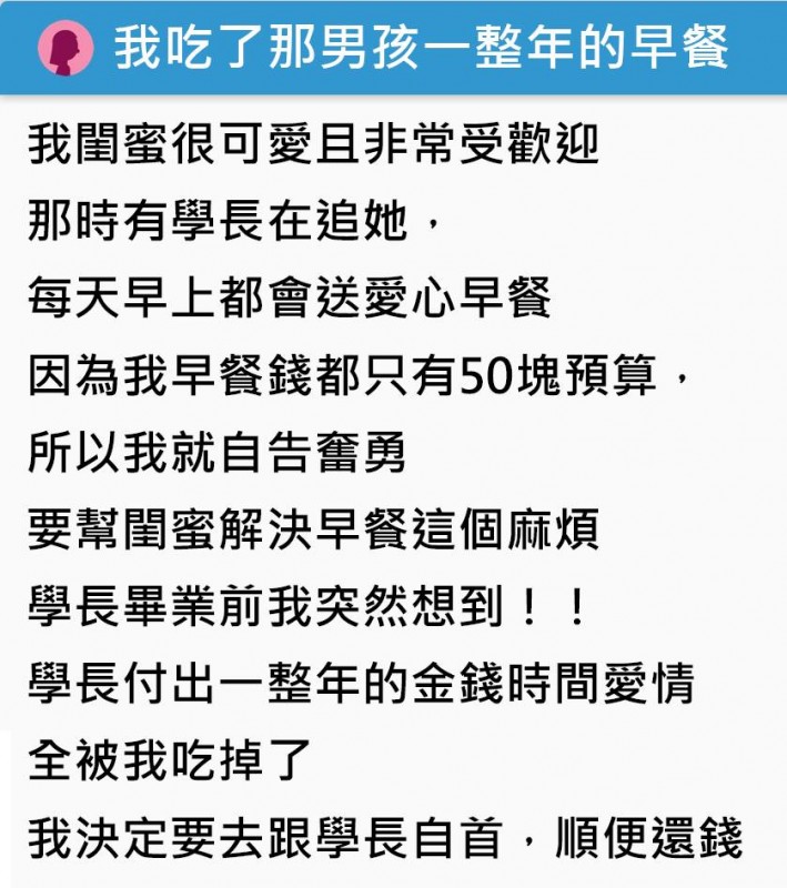 沒想到幫朋友吃了一整年的早餐,還可以找到真愛??? 原PO真的太幸運啦!!! ———————————