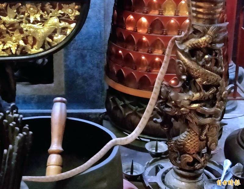 南投縣名間鄉天受宮宮主陳政雄考量防疫安全,今年造訪的「帝爺公蛇」不開放信眾入內參觀。 南投縣名間鄉天