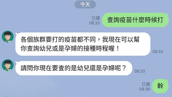 「疾管家」官方LINE帳號成為民眾獲取疫情資訊的來源。就有網友日前向疾管家詢問「疫苗什麼時候打」並獲