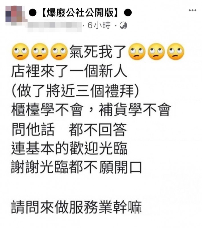 每個人剛開始上班一定都會有菜鳥期,這時候最需要好同事跟好老闆耐心的教導。 不過最近一位網友卻在臉書專