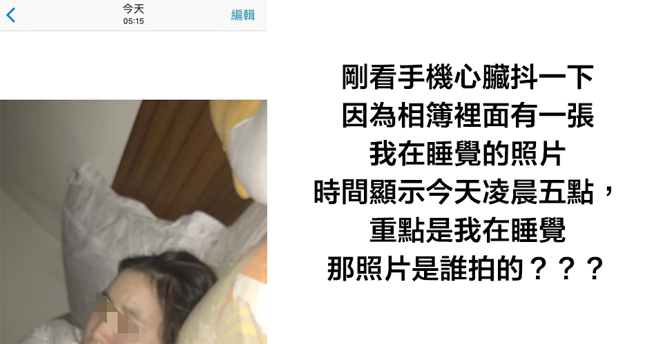 因為相簿裡面有一張我在睡覺的照片 時間顯示今天凌晨五點,重點是我在睡覺那照片是誰拍的??? 結果看到
