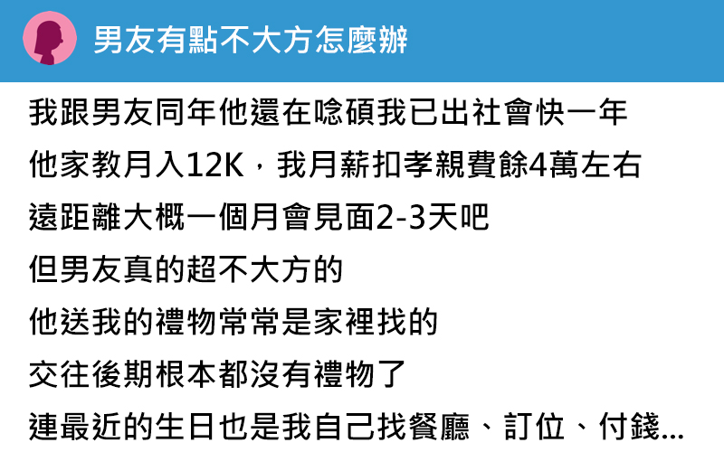 送禮要送到對方心坎裡,這可是一門學問。最近,一名男網友在臉書社團中貼文,表示女友不斷暗