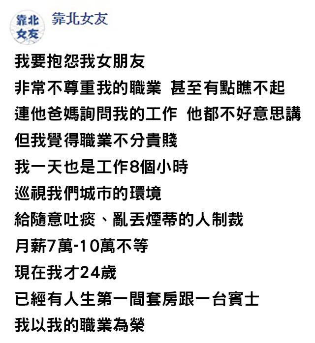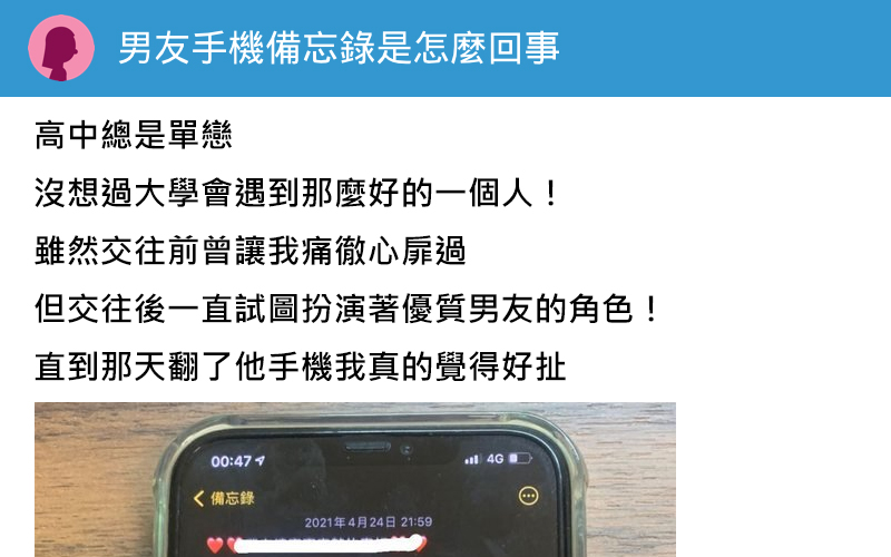 情侶交往吵架都是家常便飯的事情,輕微的床頭吵床尾和,嚴 重一點的就道不同不相為謀。 在臉書社團中有位