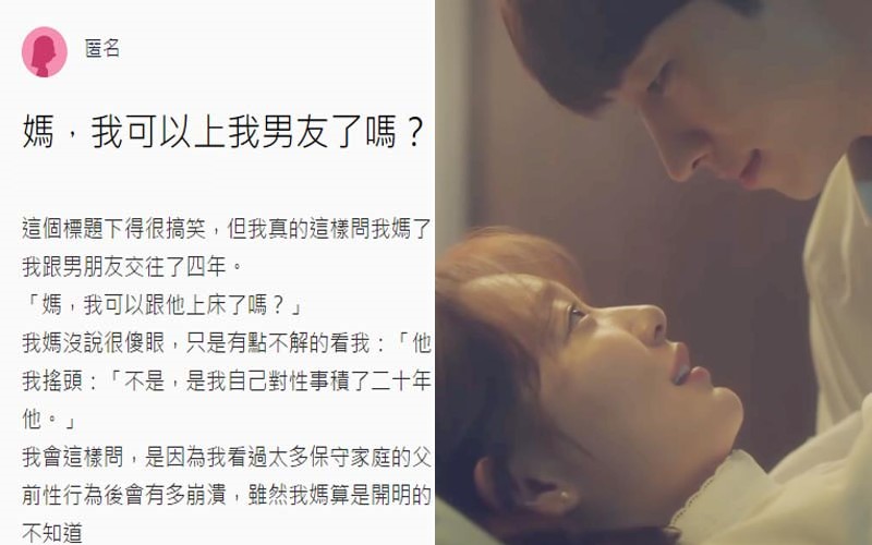 雖然現在社會開放很多了,不過面對孩子的親密行為,台灣不少父母還是挺保守的 剛剛就在「Dcard」上,