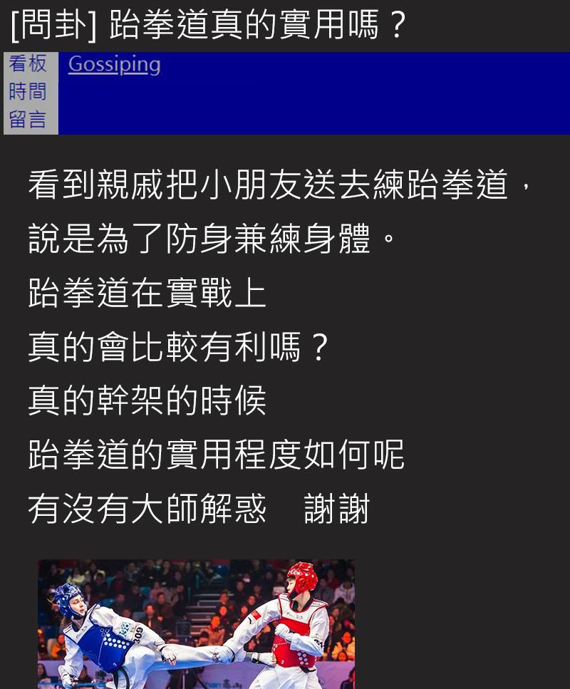 其實我也蠻好奇的…484怕遇到怪人,需要練一下防身術XD? 就有一位網友在批踢踢上問掛: