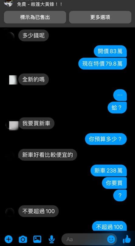 網友在臉書社團上發文抱怨: –以下– 賣車日常 百萬內想買全新敞篷大黃蜂?