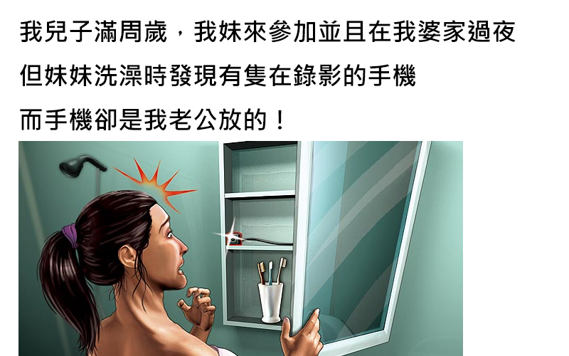 我兒子周歲,我妹來參加並且在我婆家過夜, 我妹洗澡時,發現正在錄影的手機,手機是我老公放的, 裡面清