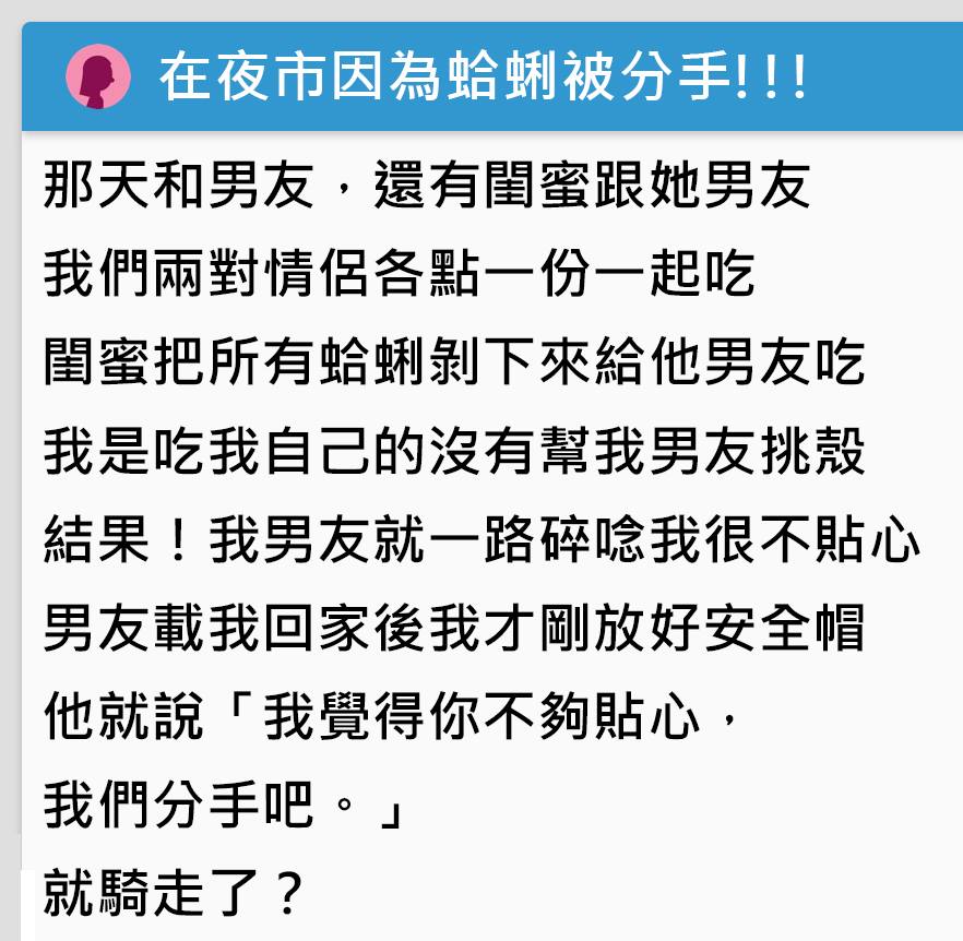 不知道這位仁兄484得了王子病… 一位女網友在迪卡PO文,直喊:「真的很扯!樹林某夜市逛街逛到分手」