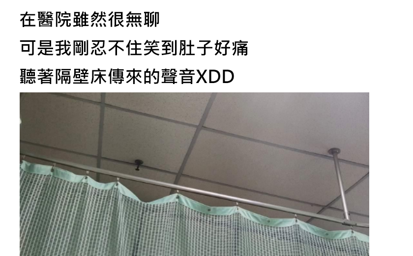 網友在臉書社團上發文: 在醫院雖然很無聊可是我剛忍不住笑到肚子痛 以下是隔壁床的情況…