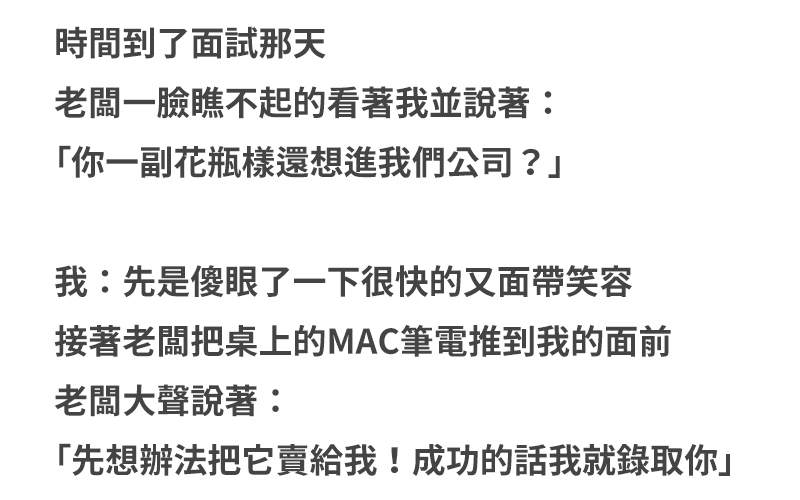 年輕人畢業想找工作,無非得先通過公司的面試關卡,而現在的老闆為了希望能找到優良的員工,總會在面試時出