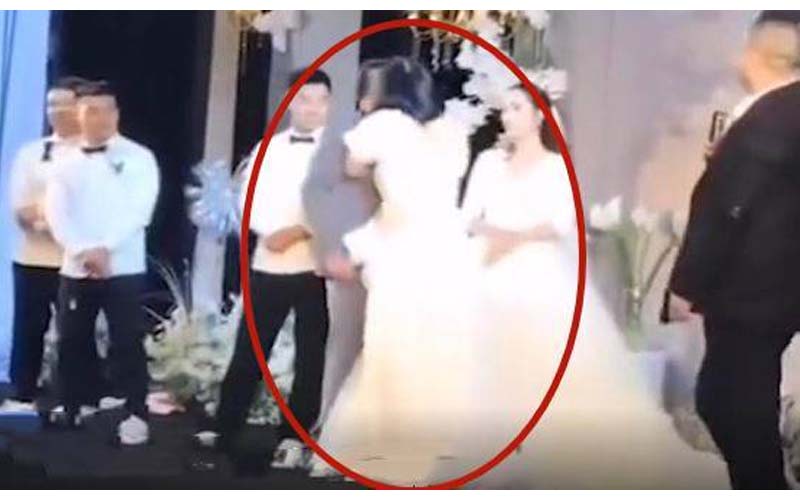 一段婚禮影片日前在微博流傳,引發網友熱烈討論。影片中,一名伴娘在婚禮上,,當眾人面親了新郎。 婚宴正