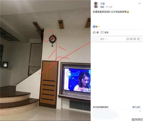 他深夜抬頭看時鐘驚見「詭異長髮人頭」,神人「圖解不科學真相」超驚! 也有網友認為,以照片中的站法,身