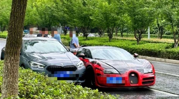 以為比誰大聲就贏了?中國大陸一名男子開著豪車布加迪,不慎撞到一台BMW駕駛,沒想到下車竟嗆對方「給我