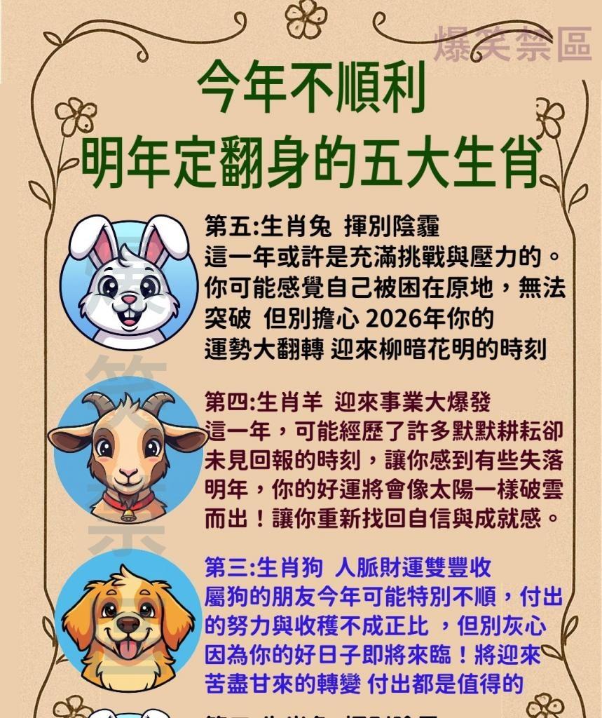 是不是覺得今年特別不順,事事不盡如人意?別灰心,這些考驗都即將結束!2026年將為你帶來全新的開始,過去的烏雲將散去,好運即將降臨。特別是這五個生肖,他們將告別所有的不順遂,迎接一個事業、財富和情感都將翻身的黃金年度!如果你榜上有名,恭喜你,準備好迎接好運連連的一年吧!