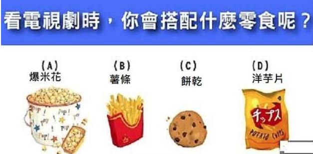看電視劇時,你會搭配什麼零食呢?請看圖選擇其中一個~