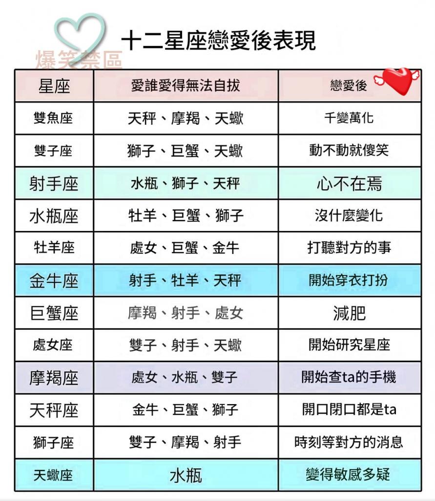 十二星座戀愛後的表現