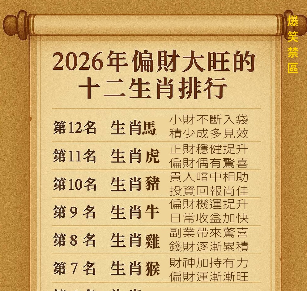 🎉 恭喜屬狗的朋友! 你們將在2026年獲得最強大的財星護體,偏財運勢強勢問鼎榜首!你們將感受到財神爺的眷顧,橫財運爆發力極強,無論是參與抽獎、投資回利,還是額外獎金,都將獲得超乎想像的豐厚回報。這一年,你們的財庫將會不斷膨脹,成為最令人羨慕的生肖!