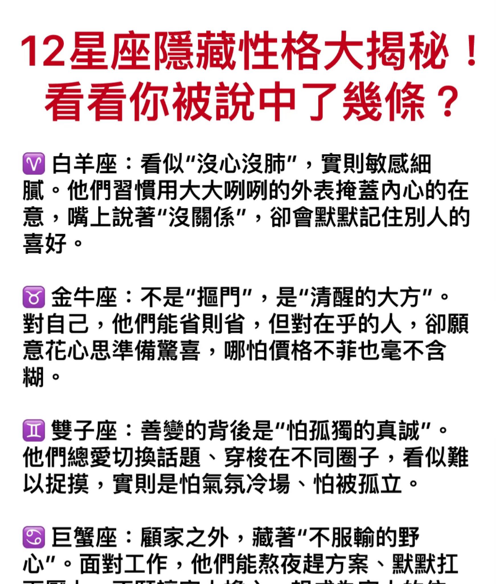 表面上你看似冷靜理智,其實內心容易被環境或他人的情緒影響。