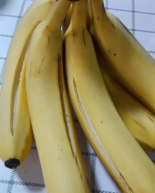 近日,不少市民在菜市場發現一種奇特的香蕉 —— 它們外皮新鮮,但每根都有道裂口。