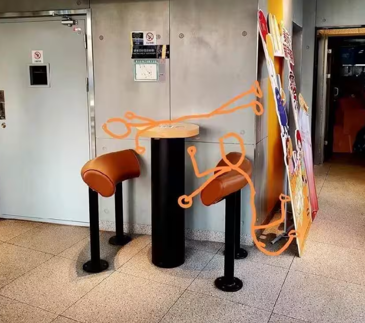 這類設計(如斜扶手長椅、帶隔斷的座椅)已成為城市管理的隱形工具,平衡著公共資源的共享性與流動性。