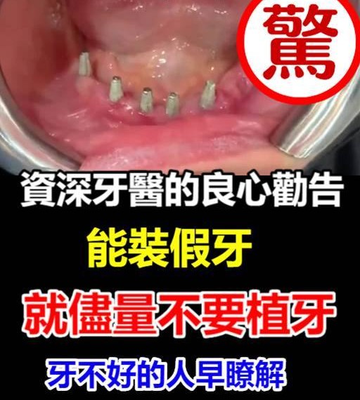 近年來「植牙」風潮盛行,許多人一聽到缺牙就立刻想到要植牙,認為這是最先進、最耐用的方式。但資深牙醫提醒:**「不是每個人都適合植牙!」**尤其是中老年人或牙周狀況不佳者,**能裝假牙,就儘量不要植牙。**這並非危言聳聽,而是出於對病患長期健康的真實考量。