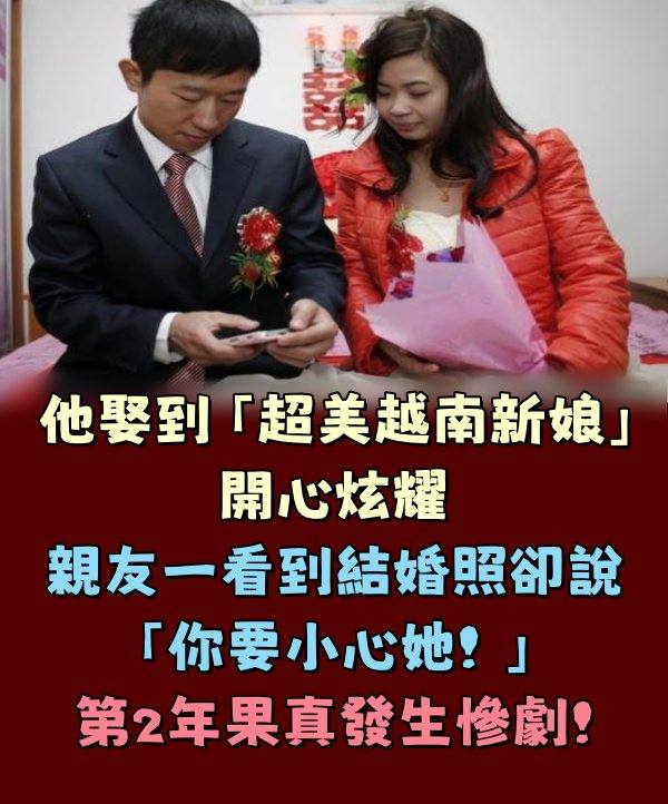 婚禮當天,仲介果然替他帶來一位很漂亮的越南老婆,當男子看到新娘穿上禮服的時候,激動地立刻傳照片向自己遠在故鄉的親友們炫耀!只是沒想到後來他的朋友卻說…