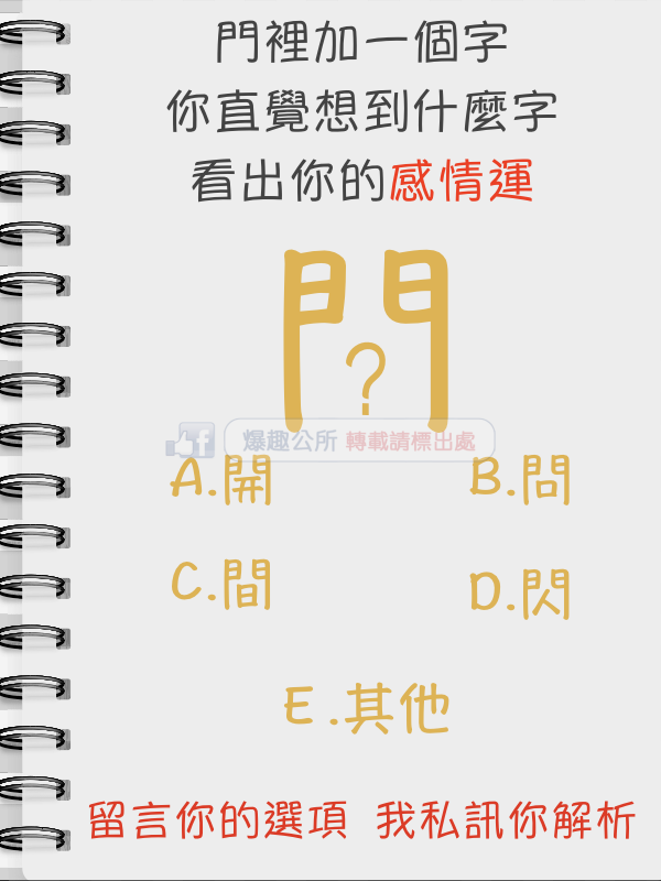 門裡加一個字 你直覺想到什麼字? 看出你的感情