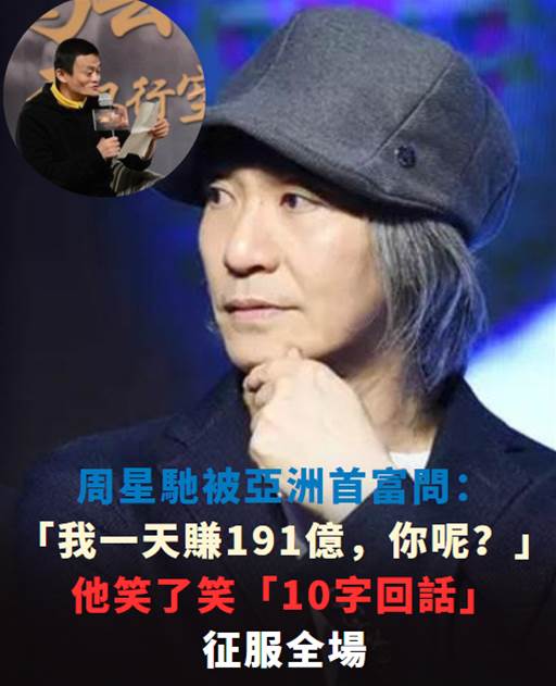 在一次發布會上,馬雲問了周星馳一個非常棘手的問題。馬雲說:「我一天能賺191億,你呢?」一天可以賺到191億,這在娛樂行業幾乎是無人能及的。面對這樣的一個問題,如果他說比馬雲還多的話,那似乎顯得假,馬雲也會沒有面子。