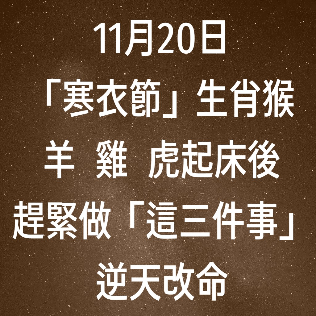 明天 11 月 20 日是農曆十月初一(寒衣節)與丁巳火日,是 60 年才能遇到一次的「扭轉乾坤」之日。