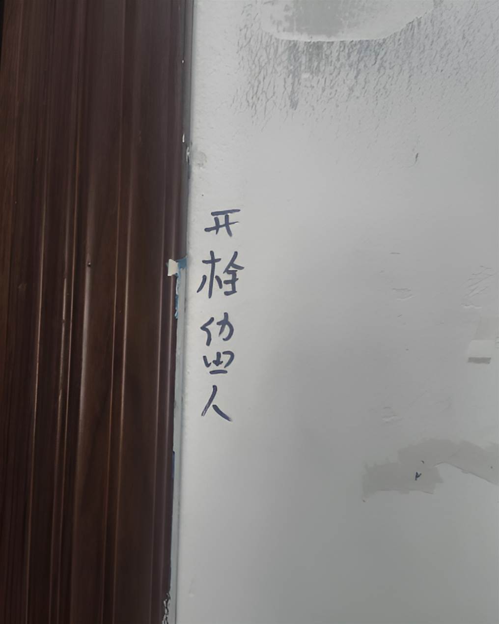 新搬來的年輕夫婦發現鄰居家門上那行字時,已是傍晚時分。那對老夫妻獨居,子女都在外地,平日裡出入都很安靜。此刻,在樓道昏暗的光線下,那扇白色木門靠近門框的位置,赫然用黑色記號筆潦草地寫著幾個字。由于字跡扭曲,加上牆壁有些斑駁,只能勉強辨認出是「開栓留人」幾個字。