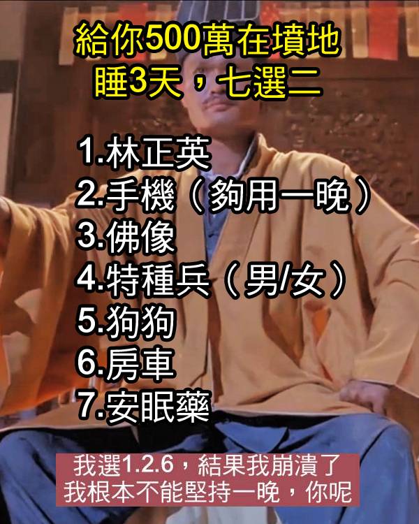 給你500萬在墳墓睡3天,七選二,竟然看透你的內心