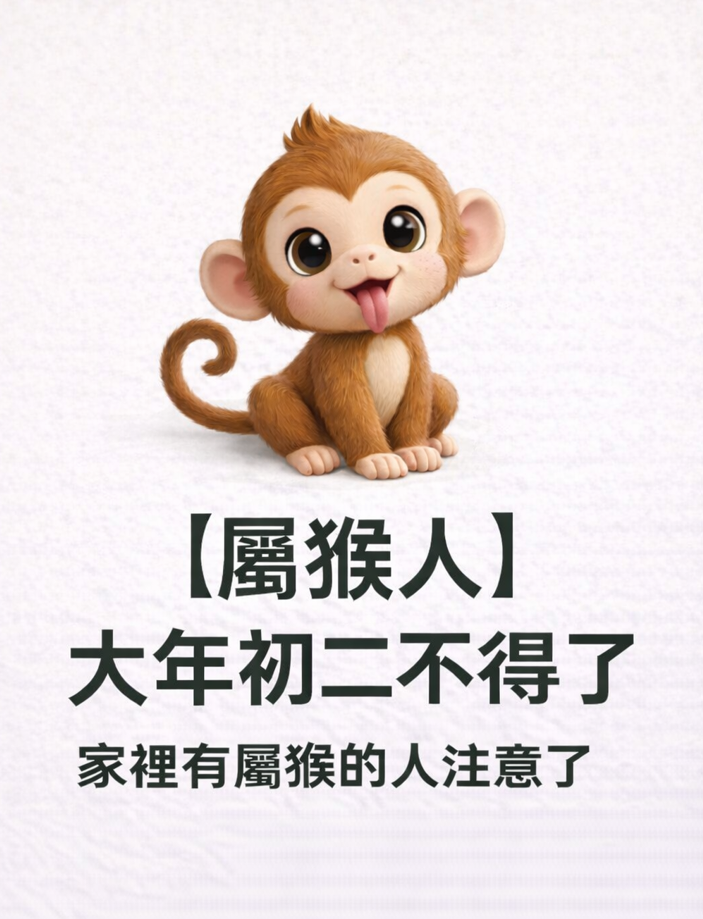 農曆新年第二天「大年初二」,除了是回娘家的好日子之外,對屬猴的人來說,更是一個運勢轉強、好事接連來的關鍵時刻!命理老師也提醒,屬猴的人今年初二氣場特別旺,把握好這天,很可能替整年打下好基礎。
