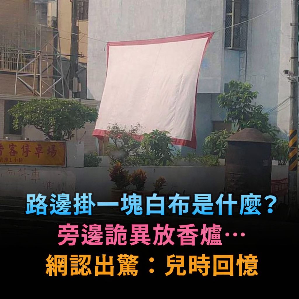 最近有一名網友在臉書社團「爆廢公社」分享一張照片,引起不少討論。畫面中是一處看起來像宮廟附近的場地,旁邊有「香客停車場」的招牌,圍牆外還能看到金爐,環境相當典型。最吸睛的是畫面中央,一塊四周有紅邊的大白布,就這樣高高掛在空中,看起來既突兀又神秘。