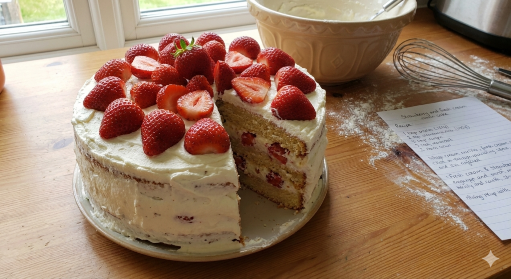 B. 草莓鮮奶油蛋糕 (🍰)