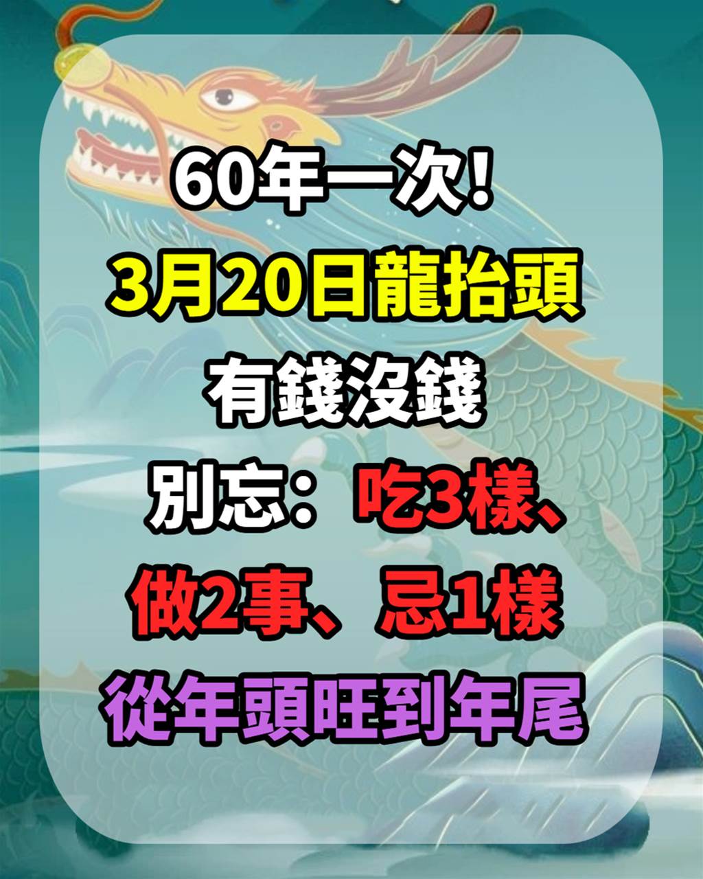 60年一次!3月20日龍抬頭,有錢沒錢,別忘吃3樣、做2事、忌1樣,從年頭旺到年尾