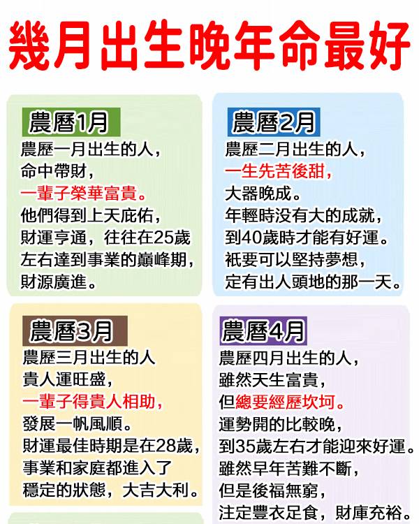 幾月出生晚年命最好