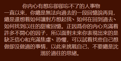 性格: 妳是一個愛家、追求穩定的人,最大的心願就是全家人平安順遂。