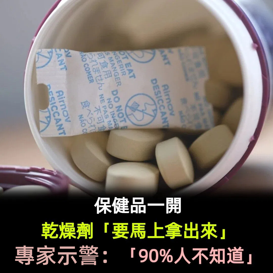 專家提醒,保健品只要一開封,裡面的乾燥劑最好立刻拿出來,否則不但無法繼續保護內容物,反而可能讓保健品更容易受潮、變質,甚至影響保存品質,據說有超過9成人根本不知道這件事!